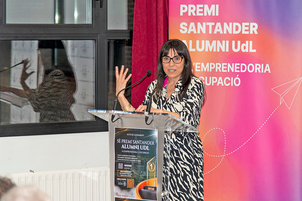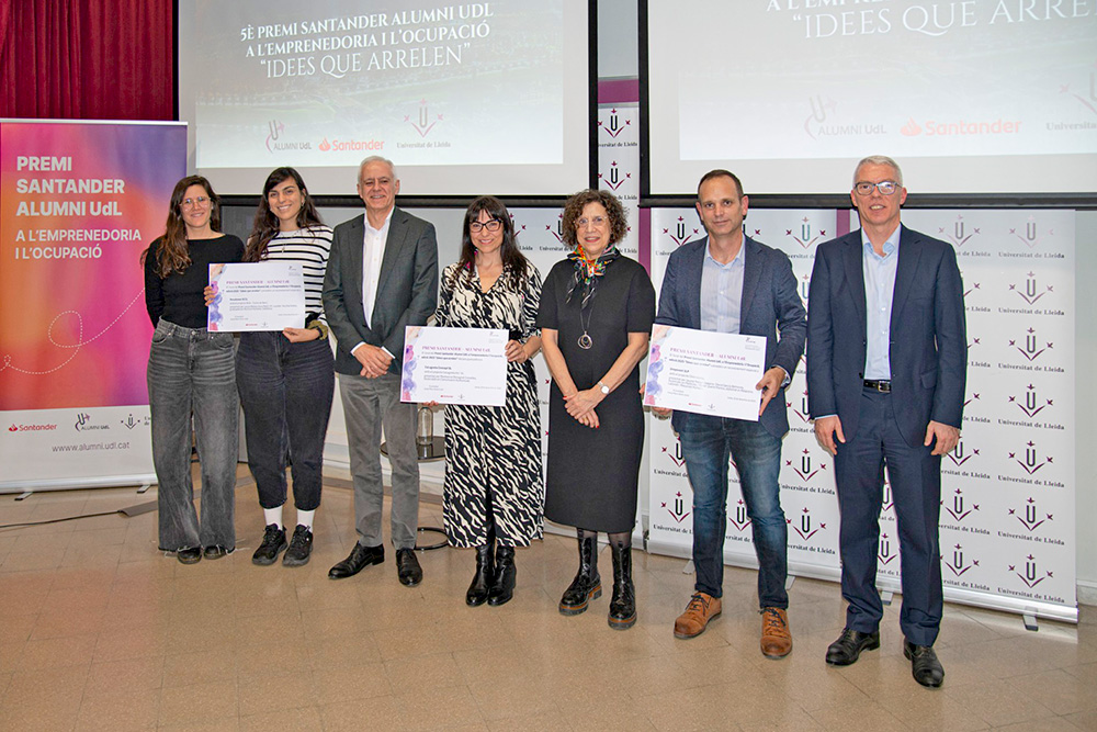 El premio se ha entregado en la Sala de Juntas del segundo piso de la Facultad de Letras en un acto encabezado por la rectora de la UdL, Maria Àngels Balsells; el presidente de Alumni UdL, Josep Mª Sentís; y el representante de Banco Santander, Roger Hernández.